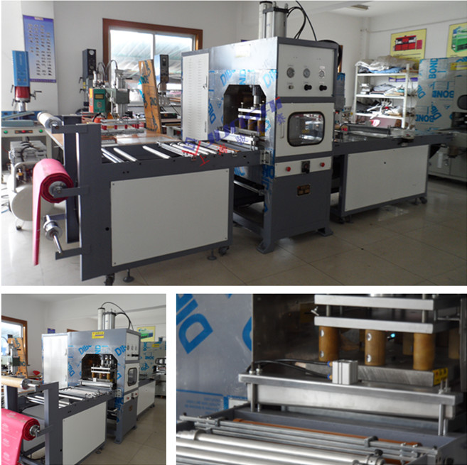 特點:改變傳統高頻機只熱合不切斷耗工耗時的缺點,提供產品熱合的檔次,定位準確,可省料10%。