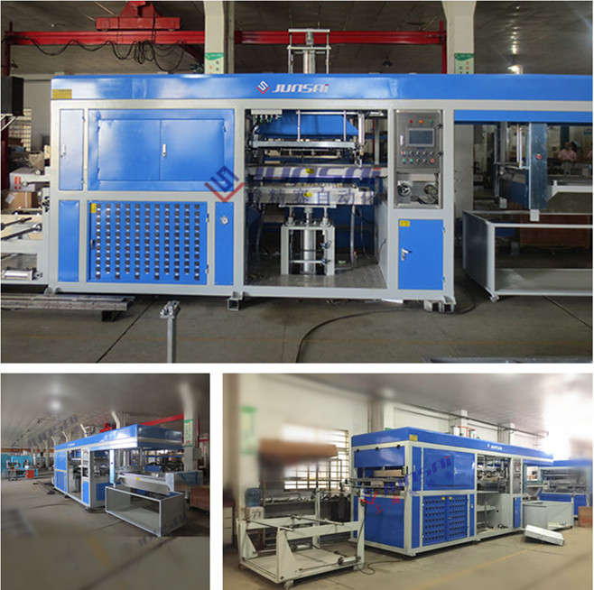 食品包裝托盤吸塑機 特點: 設(shè)備操作方便、結(jié)構(gòu)穩(wěn)固、占地面積小、通用性強,從自動上料卷到自動執(zhí)行正負壓吸塑到自動沖切到人工收取成品,一個人可完成,其正負壓的吸塑方式在常規(guī)吸塑機基礎(chǔ)品質(zhì)提高一個檔次,效率提升30%左右,使加工制品單件成本下降20%左右,保障了用戶的競爭力。